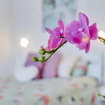 For guests' comfort, an adjoining terrace and a balcony, along with an iron and ironing board, are provided. Bathroom amenities comprise a bath, as well as a dryer and towels.